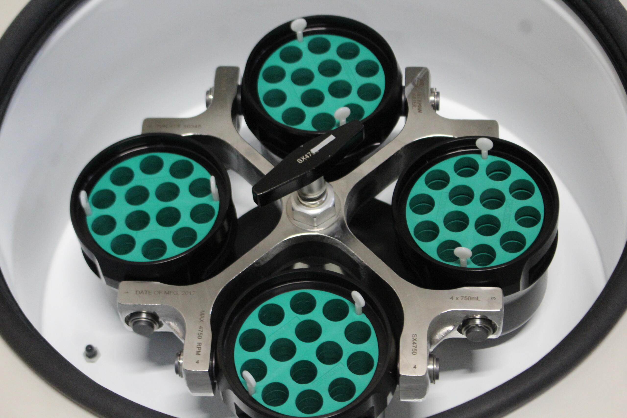 1x Beckman SX4750 zwenkrotor (max. 4750 tpm)