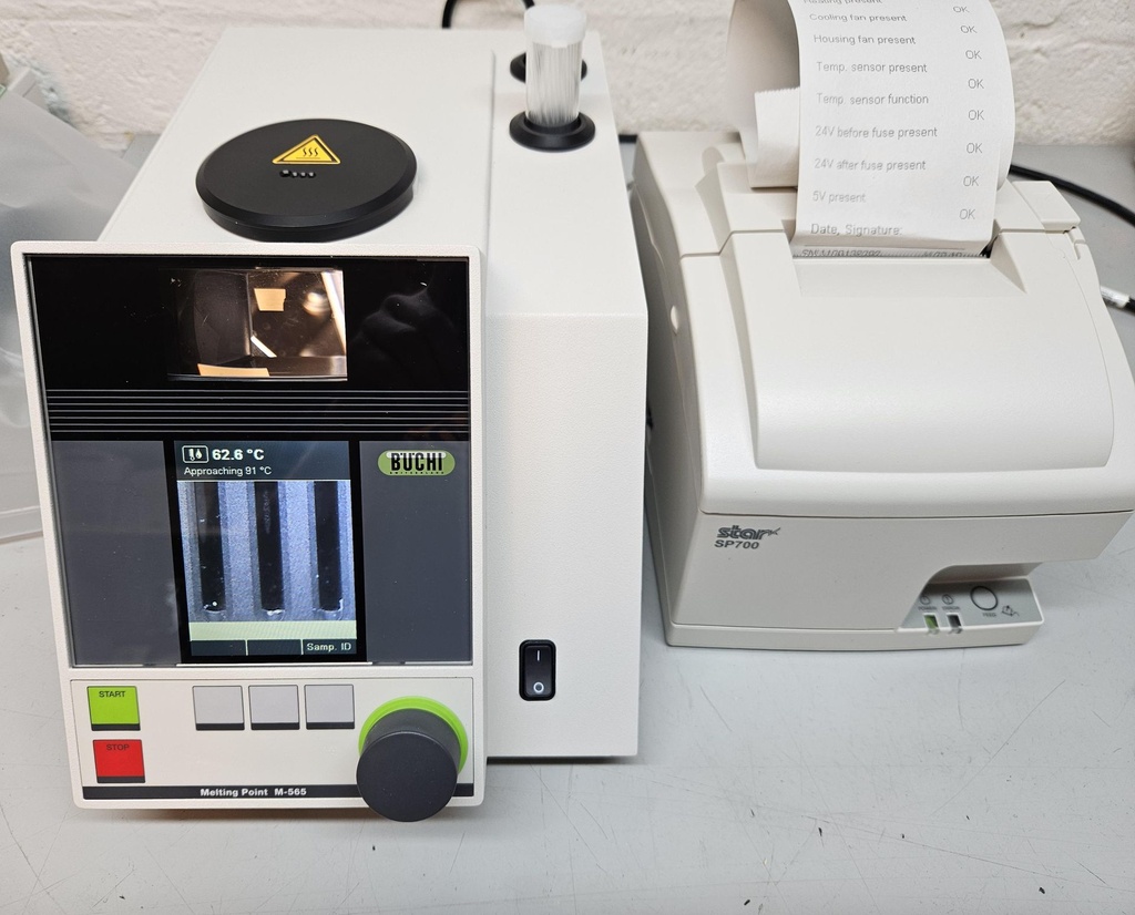 De Buchi M-565 geautomatiseerde smeltpuntmeter met printer is ontworpen voor professionele kwaliteitscontrole. Het apparaat beschikt over een kleurendisplay voor het observeren van de faseovergang, een videocamera en een videoweergavefunctie waarmee de smelt- en kookpuntbepaling kan worden bekeken. De M-565 is een betrouwbare kalibratie met automatische bepaling en opslag van kalibratieresultaten, automatische bepaling van smelt- en kookpunten, zeer nauwkeurige temperatuurregeling en -meting, geoptimaliseerde reproduceerbaarheid dankzij homogene vulling van de capillair met de Sample Loader M-569, controle van vrijwel elk type monster door meting van smeltpunt, kookpunt of slip-smeltpunt, dubbele controle van lastige monsters door vergelijking van handmatige en geautomatiseerde metingen, observatie en weergave van de faseovergang met behulp van kleurendisplay en video-opname, optionele pc-software voor eenvoudig beheer van methoden en resultaten, en voldoet aan farmacopeemethoden (Europees, USP, Japans).