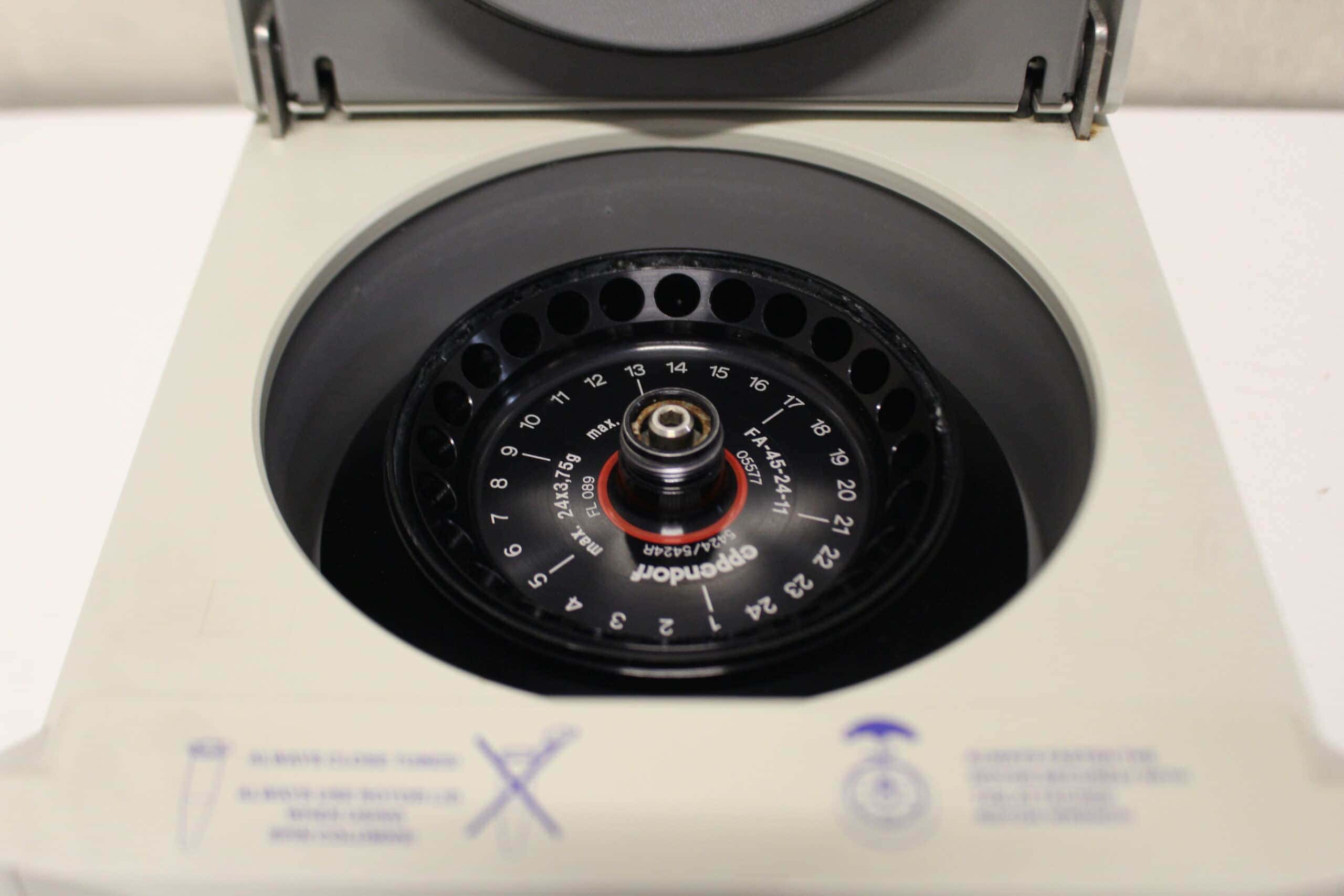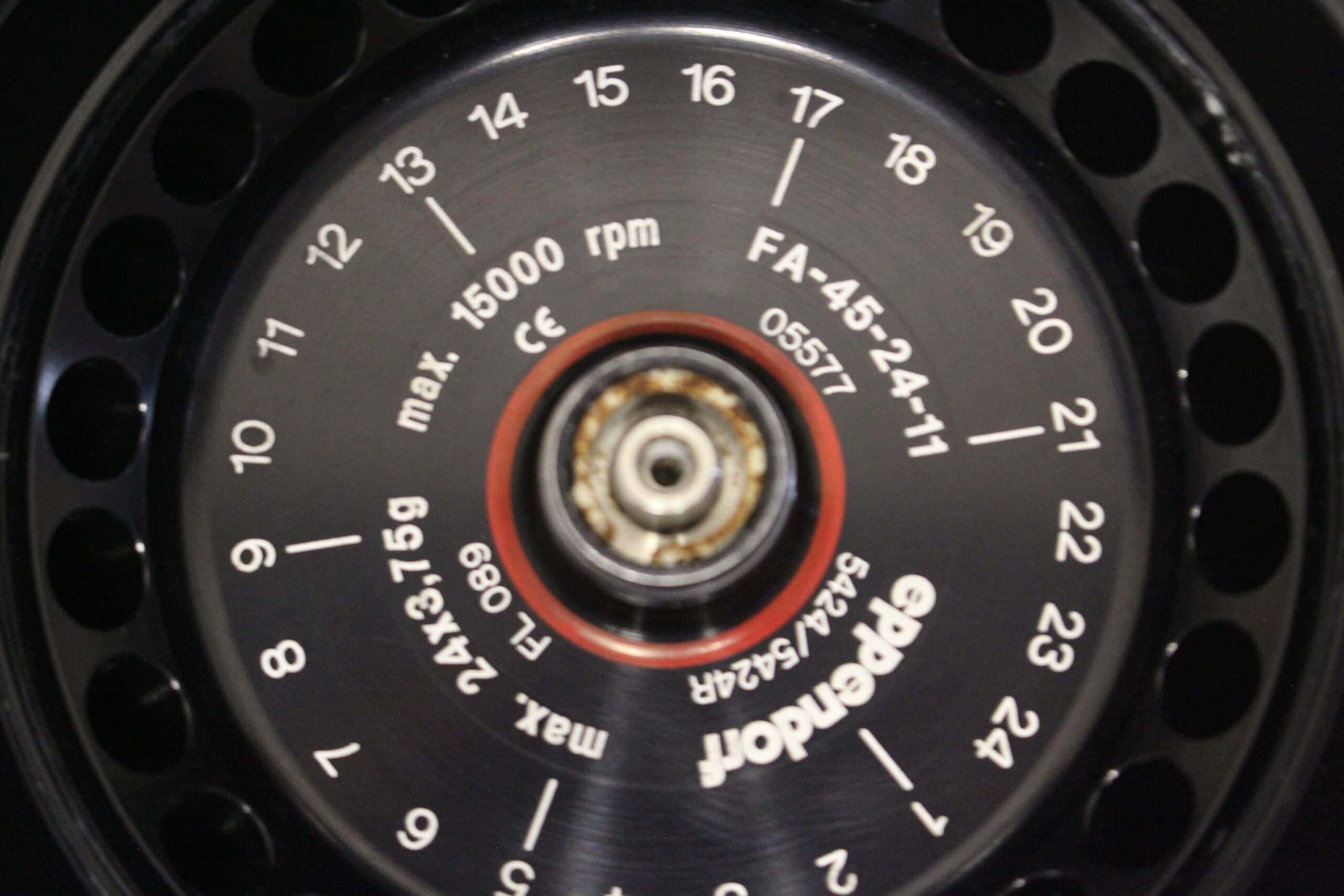1x Eppendorf FA-45-24-11 vaste hoekrotor (max. 15000 rpm; 24x 1,5 ml/2,0 ml microtestbuiscapaciteit)