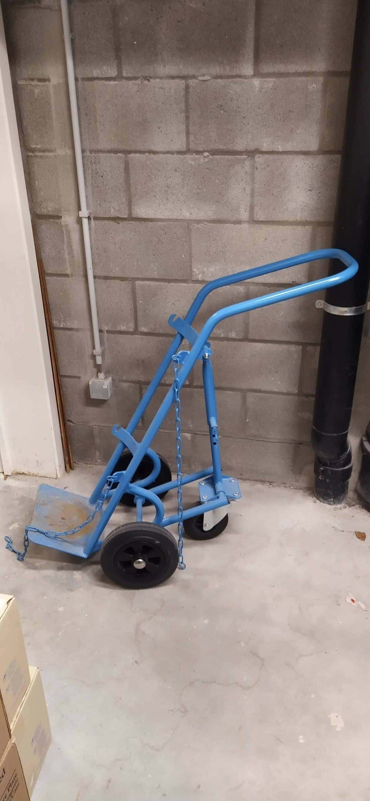 Gasflessenwagen voor één stalen fles tot een doorsnede van 285 mm. Maximale fleshoogte 1200 mm.