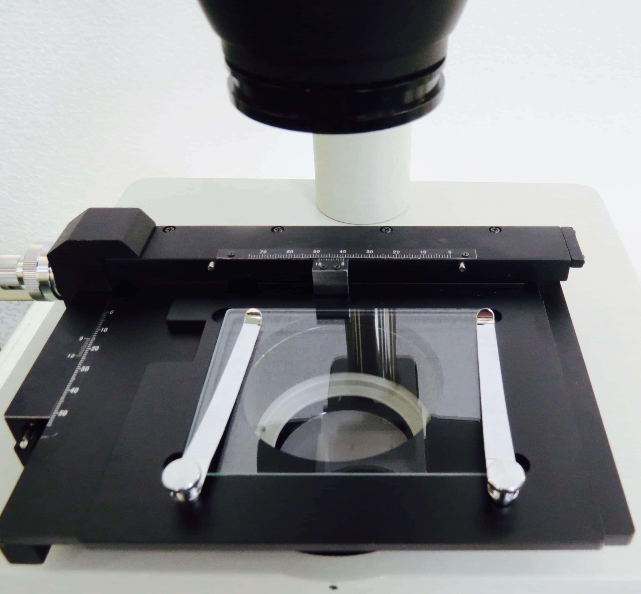 Microscoop gemonteerd op helder en donkerveld voet