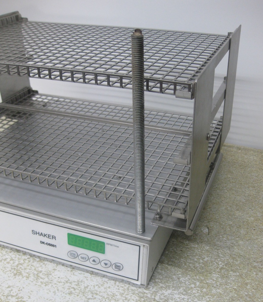 Een platform shaker met een dubbel platform van 25 x 35 cm. van GS-instruments. Hoogte in onderste platform: 12 cm.