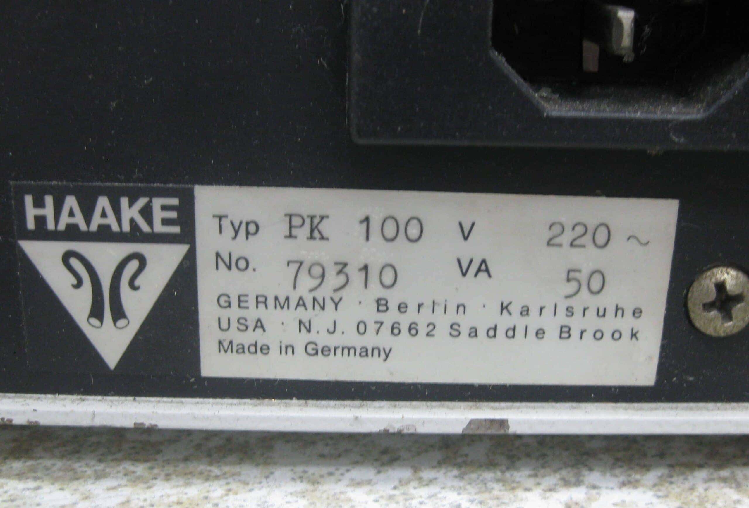 Een platform voor hoge viscositeit metingen van Haake, type PK100. Geschikt voor metingen van kleine hoeveelheden met hoge viscositeit met bijgeleverd 4 cones van 50/28/20/12 mm. Aansluitingen voor een water- thermostaatbad voor constante temperatuur metingen.
