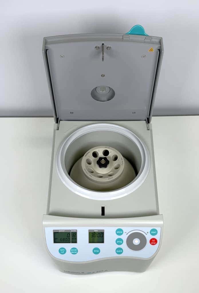 De compacte centrifuge Z 207 A is ideaal voor medische praktijken en laboratoria met een klein aantal monsters. Hij wordt geleverd met een hoekrotor, die tot 8 x 15 ml buizen kan laden en een maximale snelheid van 6.800 rpm bereikt, wat overeenkomt met 4.445 x g!