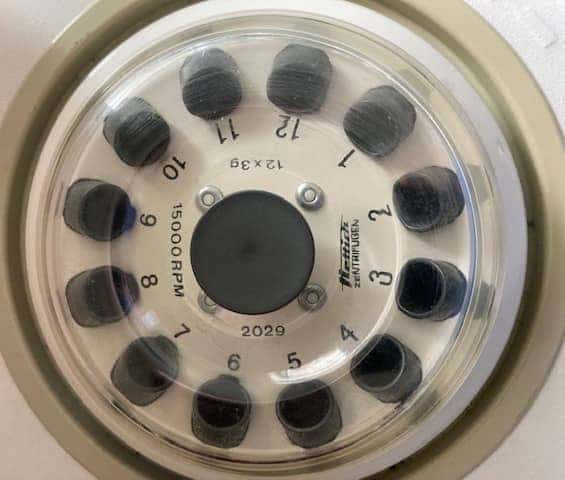 Centrifugeer met 12-voudige vaste hoekrotor.