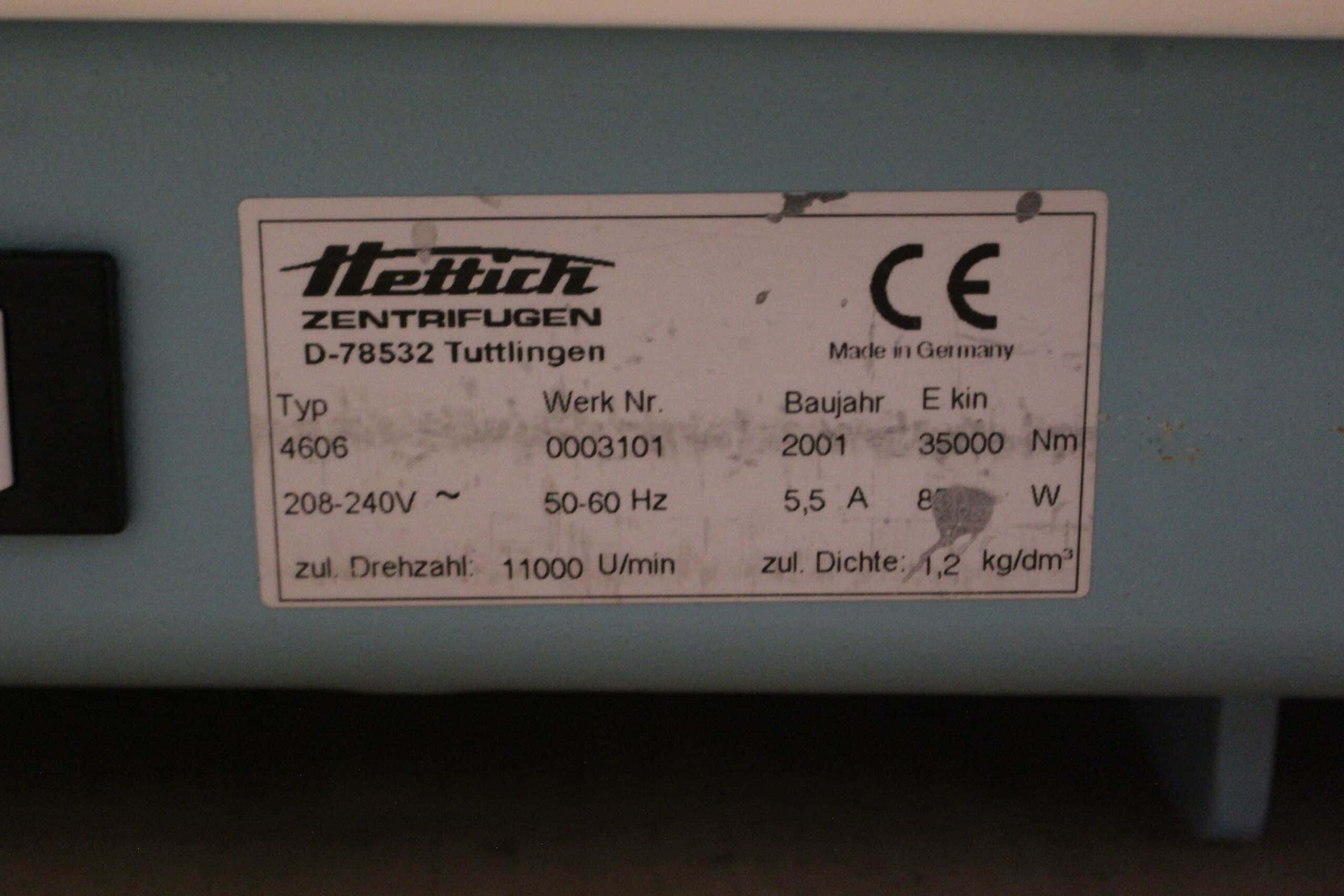 1x Hettich 4394 swing-out rotor (4000 tpm)