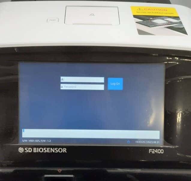 De SD Biosensor F2400 analysator is een medisch apparaat voor in vitro diagnostiek dat kwantitatieve of kwalitatieve biomarkers van lichaamsvloeistoffen zoals bloed, urine, neusslijm, enz. meet in een laboratorium of Point of Care-testomgeving. De analysator is geïndiceerd voor het monitoren en diagnosticeren van de lichaamsvloeistofparameter in klinische omgevingen door beroepsbeoefenaren in de gezondheidszorg. In alle gevallen moet de analyser worden gebruikt met aangewezen testapparaten geproduceerd door SD Biosensor, Inc (niet inbegrepen in dit aanbod). Dit fluorescentie-immunoassay-apparaat dat kwalitatieve en kwantitatieve analyses kan uitvoeren op infecties, luchtwegaandoeningen en chronische ziekten, ondersteunt een handige gebruikersinterface en LIS/HIS-connectiviteit.