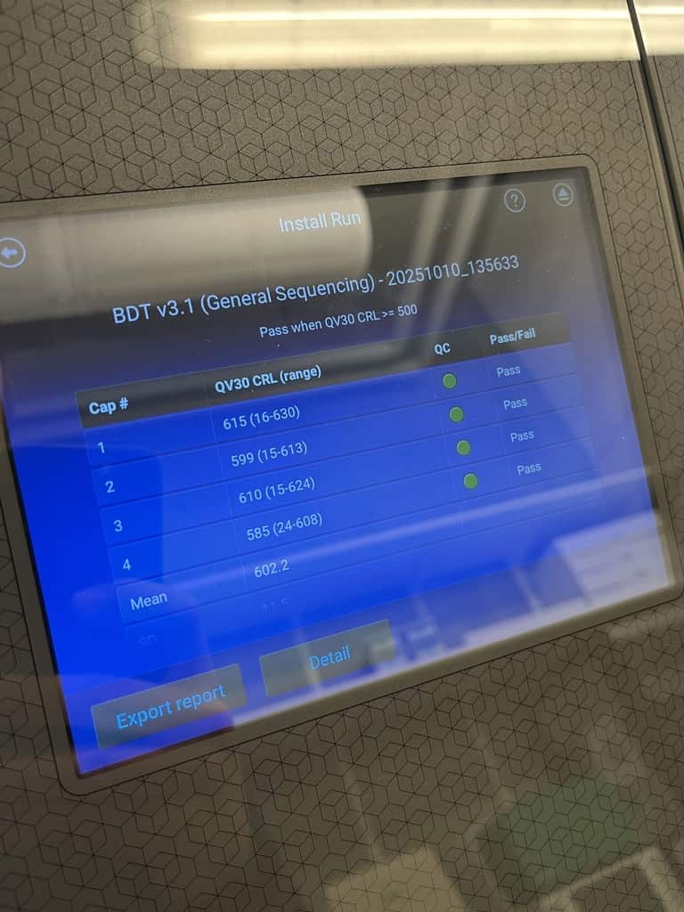 Er is recent een installatietest uitgevoerd met reagentia van Applied Biosystems™. Het instrument heeft alle functionele en prestatietests met succes doorstaan, zoals gedocumenteerd in de interne logbestanden en zichtbaar op de bijgevoegde foto’s.