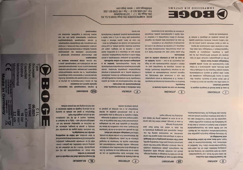 Bijbehorende schroefcompressor C3L van het merk Boge uit het jaar 2021.