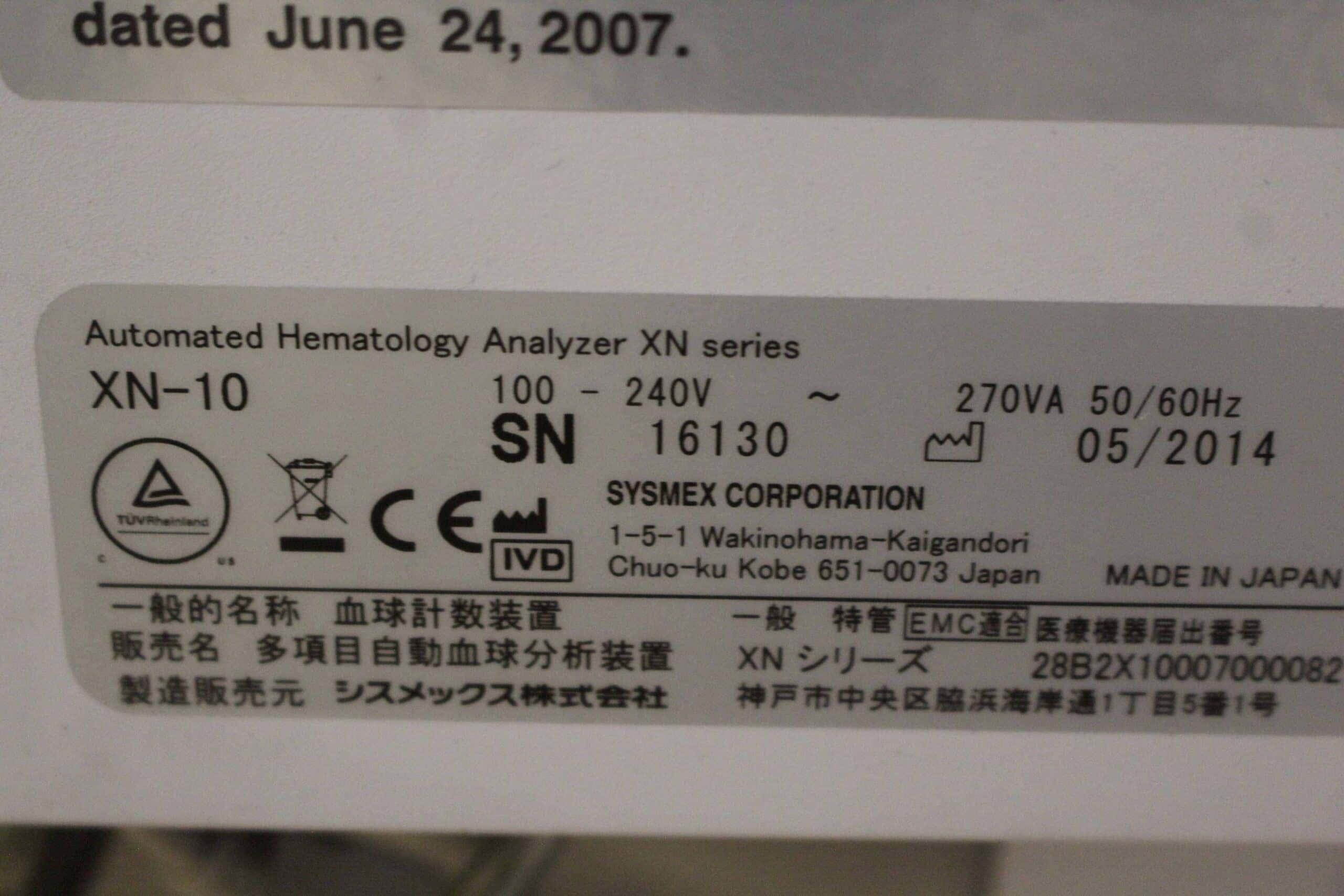 Sysmex XN-2000 Geautomatiseerde Hematologie Analysator