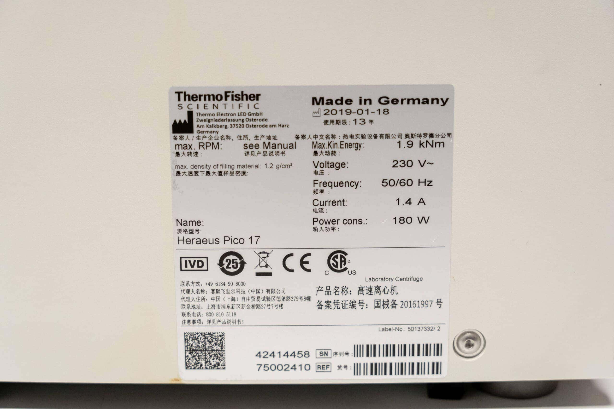 Thermo Scientific Pico 17 Microcentrifuge